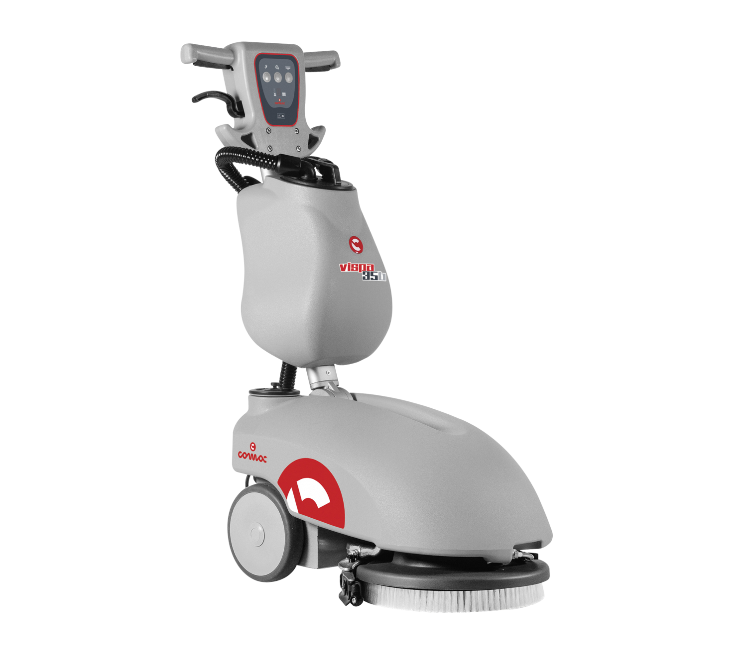 Det här är en riktigt smidig liten batteridriven skurmaskin, med 35cm skurbredd. Sugskrapan som följer tätt efter borsten gör golvet så torrt efter maskinen att man ibland undrar om det ens kommer ut vatten! Riktigt effektiv!