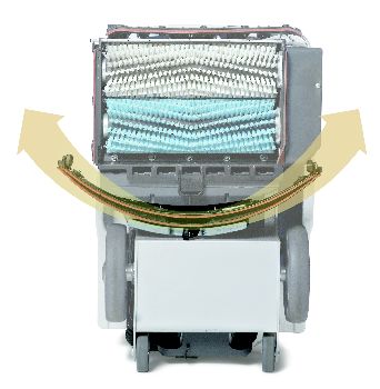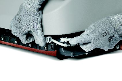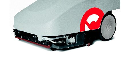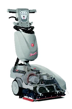 Liten borstvalsmaskin med två cylindriska borstar som sopar, skurar och suger upp i samma moment. Maskinen passar även de allra minsta ytorna eftersom bredden inte är mer än 35cm! Perfekt för omklädningsrum och duschrum med kakel och klinkers.