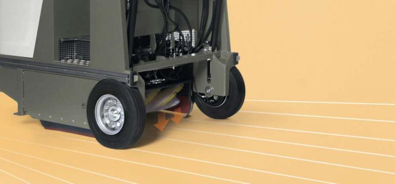 Den centrala borsten är de flytande typ och självjusterar för att hålla kontakt med marken hela tiden. Det minskar även slitaget på borsten.